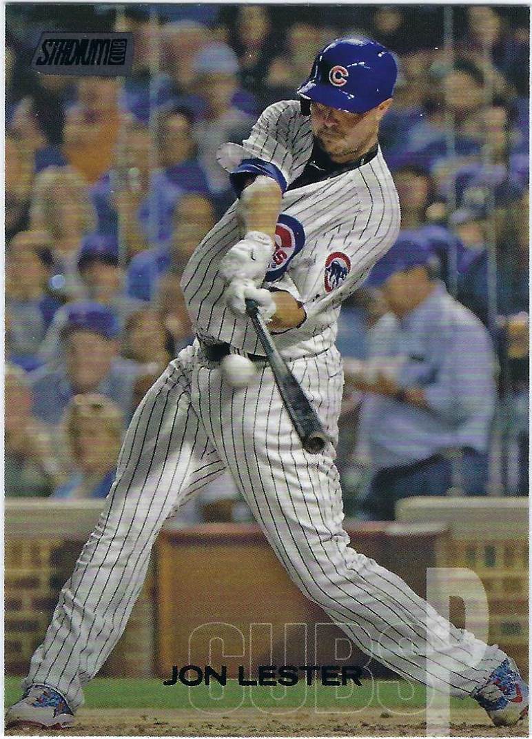Okay, this is instantly going to become one of my favorite cards of the set. I mean, you never see a card of a pitcher batting in today's baseball card sets, let alone of a player I collect. Not to mention that this is one of the black foil parallels which happen to be relatively rare. Interesting how only the name and the Stadium Club logo is in black, not the team name or position.
